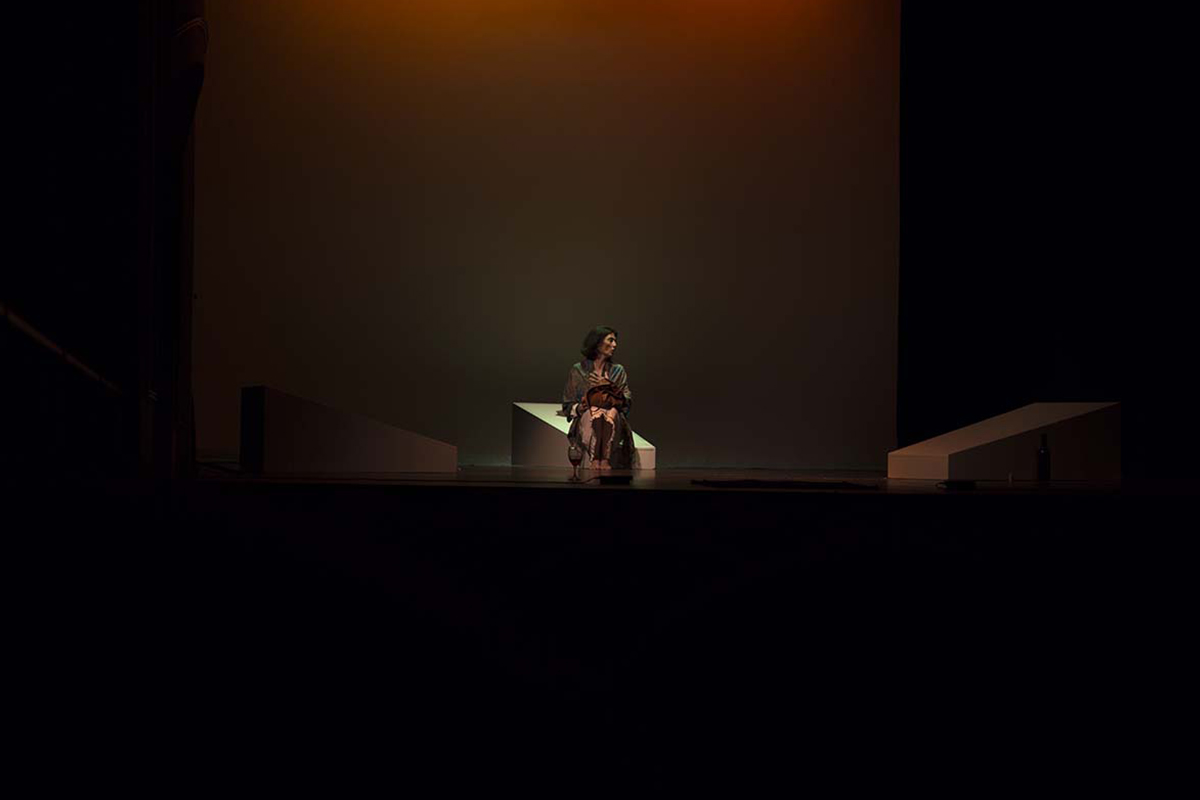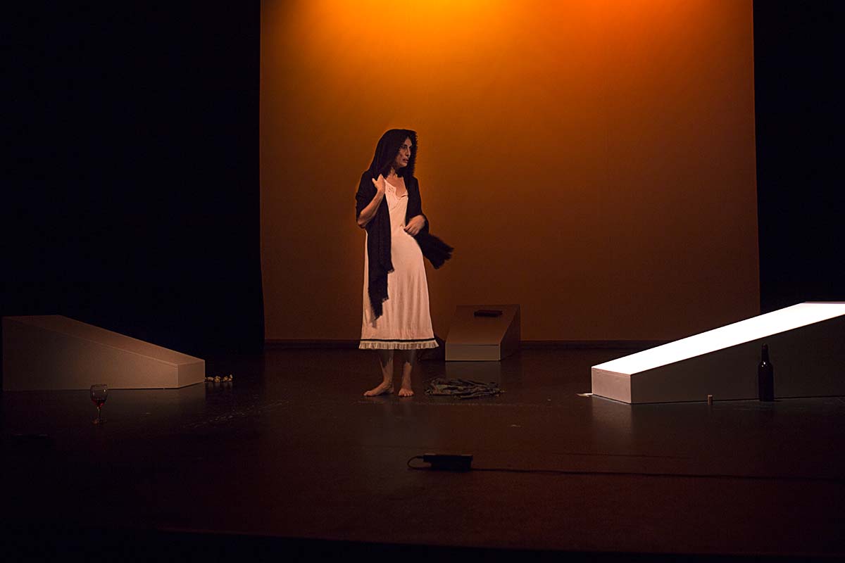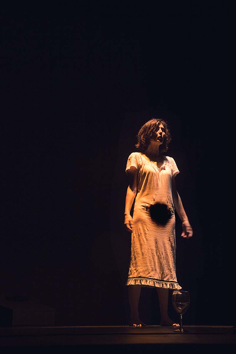 Las fotografías muestran las transiciones en la iluminación correspondientes a los diferentes estados anímicos del personaje así como la magnífica interpretación de Isabel Ampudia en un monólogo con constantes cambios anímicos.